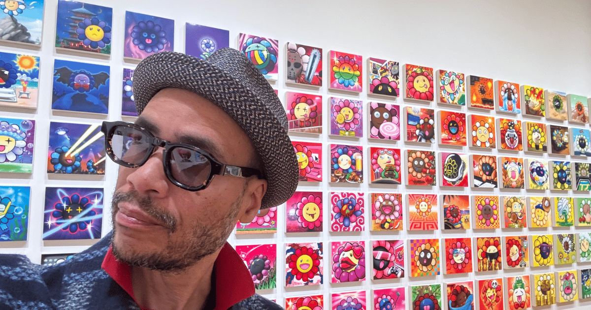 Me with Murakami sculpture. Sculpture ©2025 Takashi Murakami/Kaikai Kiki Co., Ltd.